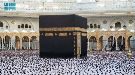 Summarize this content to 2000 words in 6 paragraphs in Arabic أدى المسلمون صلاة عيد الفطر في المسجد الحرام وسط…