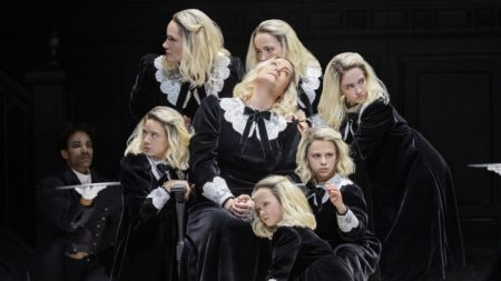 rewrite this title in Arabic Simon Russell Beale stars in a blood-soaked staging of Titus Andronicus