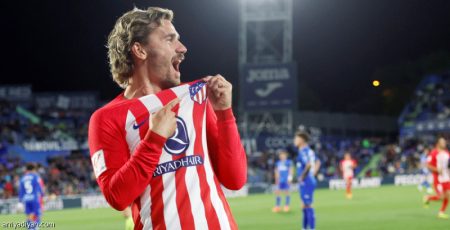 سجل اللاعب أنطوان جريزمان ، الذي يلعب مع فريق أتلتيكو مدريد ، ثلاثة أهداف خلال مباراة فريقه ضد خيتافي في…