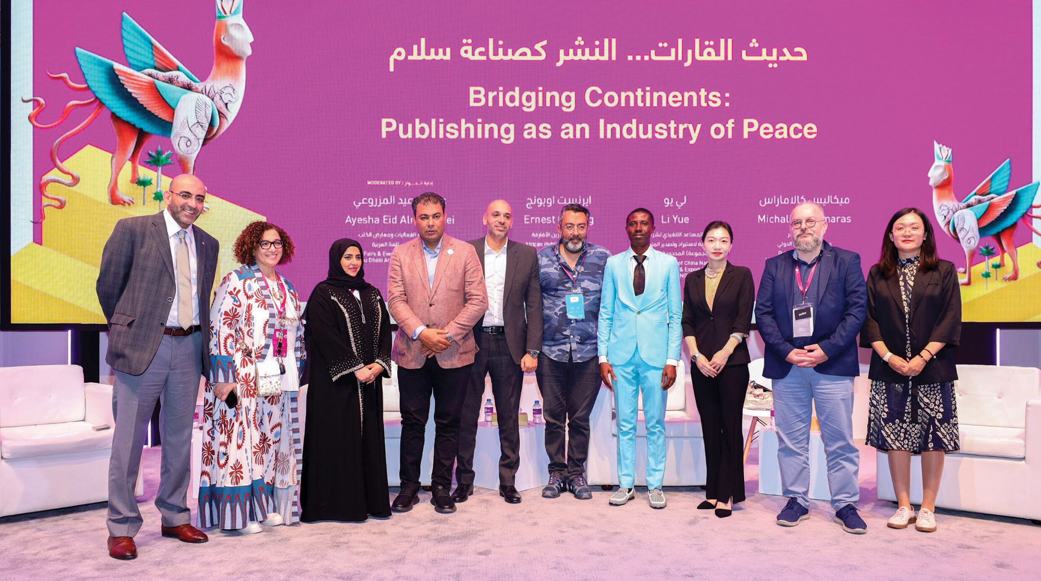 في إطار البرامج المهنية التي ينظمها معرض أبوظبي الدولي للكتاب 2024، اجتمع خبراء نشر من ثلاث قارات (آسيا، أفريقيا، أوروبا) لمناقشة جهود دور النشر في ترسيخ التفاهم وتبادل المعارف وتأريخ الحضارة البشرية. تمت الجلسة بعنوان «حديث القارات: النشر كصناعة سلام»، وأدارت الجلسة عائشة المزروعي مديرة إدارة الفعاليات ومعارض الكتاب في مركز أبوظبي للغة العربية.