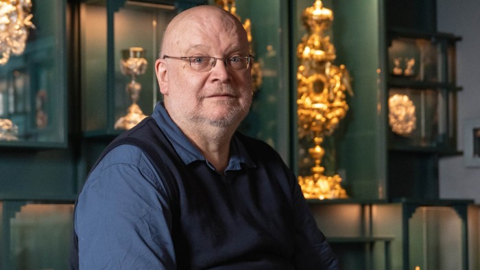 Summarize this content to 2000 words in 6 paragraphs in Arabic Unlock the Editor’s Digest for freeRoula Khalaf, Editor of the FT, selects her favourite stories in this weekly newsletter.Dirk Schrijvers considers his career as a medical oncologist and his collecting as two aspects of the same concept. “I was always interested in becoming a doctor,” he says. “We were told that you had to help your fellow men. But I was also interested in art from a very young age, and I also bought art to help the artists.”His interest in contemporary jewellery began after he moved from Limburg province in Belgium to study in Antwerp in the 1980s. Hospital dress codes at that time required him to wear a tie. “When I had to examine the patients, the tie flipped over the patient and it was not really hygienic,” says Schrijvers, who specialises in head and neck, and genitourinary cancer. His fix was a tie pin from the Antwerp-based goldsmith Nadine Wijnants.Also a collector of art, design and studio glass, Schrijvers started following the work of jewellery students graduating from the Royal Academy of Fine Arts Antwerp. If he liked a piece, he would buy it, or he would commission a ring set with blue stones (his preferred colour).Since then, his interest has moved from fine jewellery to more sculptural pieces, with a particular focus on brooches. Yet, while he used his tie pins until hygiene rules changed and required him to “skip jewellery” altogether, he does not wear his 300 pieces. Instead he collects “mostly to support the young people” and displays their work at home in presentation boxes. “The first thing a piece has to do is to touch me, to move me,” he says. “And then that can be that it’s very nice to look at . . . [or] that it has a message.”Nadine Wijnants, Color Rings series (2010)Two hundred pieces from Schrijvers’ collection are on display in Pinned! Contemporary Antwerp Jewellery, a show at the city’s DIVA museum until June 1. They include a series of four rings he commissioned from Wijnants.Each ring represents a different season and is inspired by the colour in a phrase written by Schrijvers. After Wijnants produced a “classical” white gold and blue diamond ring for summer, he told her to “go wild” on the rest as he would not wear them. “They don’t look like rings — they are little sculptures,” he says. His favourite, the autumn piece made from yellow gold and citrine, responds to his words, “The colour of the sun and the sand, and the one that makes my life shine yellow”. Schrijvers says the form is “like a spiral that refers to eternity”.Dimitar Stankov, brooch (2013)Schrijvers first met Stankov at an exhibition for students of the Royal Academy of Fine Arts Antwerp, where the Bulgarian jewellery designer used vibrations from traditional Bulgarian music to move corn starch into forms. He used this research to inform his wire Bagpipes & Memories pieces, including Schrijvers’ silver and gold brooch. The doctor says the “emotional” piece incorporates gold belonging to Stankov’s family.Schrijvers has continued to follow Stankov’s career, but is not always taken by his designs. “The series after this one, he put lamb tripe on the pieces,” he says, adding that they were “too smelly”.Warre Woutermaertens, brooch (2025)Schrijvers commissioned this brooch from Woutermaertens, a student at the Royal Academy of Fine Arts Antwerp, after admiring his larger artworks made from wood, concrete and steel, which he manipulates to represent decay. The brooch uses the same materials. “His art is at the moment of big importance because we are all looking at the changing world, where decay is becoming more and more [prevalent],” says Schrijvers.Joani Groenewald, brooch (2023)Contemporary jewellery in Antwerp has become “more critical and socially engaged” during his time collecting, says Schrijvers. Newer additions to his collection tend to carry a message. Groenewald is a South African jewellery designer whose work he discovered at an exhibition in Antwerp. This brooch is part of her [Un]connected series that explores segregation, the demarcation of land and territorialisation. The resin piece resembles a link in a metal chain, which Schrijvers says is a symbol of segregation and demarcation, but can also mean a “coming together”, reflecting what he says is Groenewald’s philosophy of “connection and unconnectedness”.Peter Vermandere, “Mirror-headed curly crawler” brooch (2014)The first brooch Schrijvers bought in the 1980s was by Vermandere and he has tried to buy from each of the designer’s subsequent exhibitions. “He is one of [my] favourites because his jewellery is always very baroque, so it’s very excessive,” says Schrijvers. “It’s always not too much, but almost too much . . . so it’s never a simple piece.”He likes the combination of materials — matt silver, shiny hematite and gold — in this piece, part of Vermandere’s Stone I Am Series 2. Schrijvers says he and Vermandere “grow together”, as the designer develops his “crazy ideas” and his own collecting evolves. It is the “thrill of looking” for a jewel that drives Schrijvers. “When I have the piece, something gets loose,” he says, adding that the stress and excitement of the chase fades away.