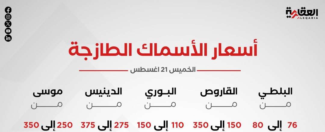 أسعار الأسماك الطازجة اليوم الخميس 21 اغسطس 2025