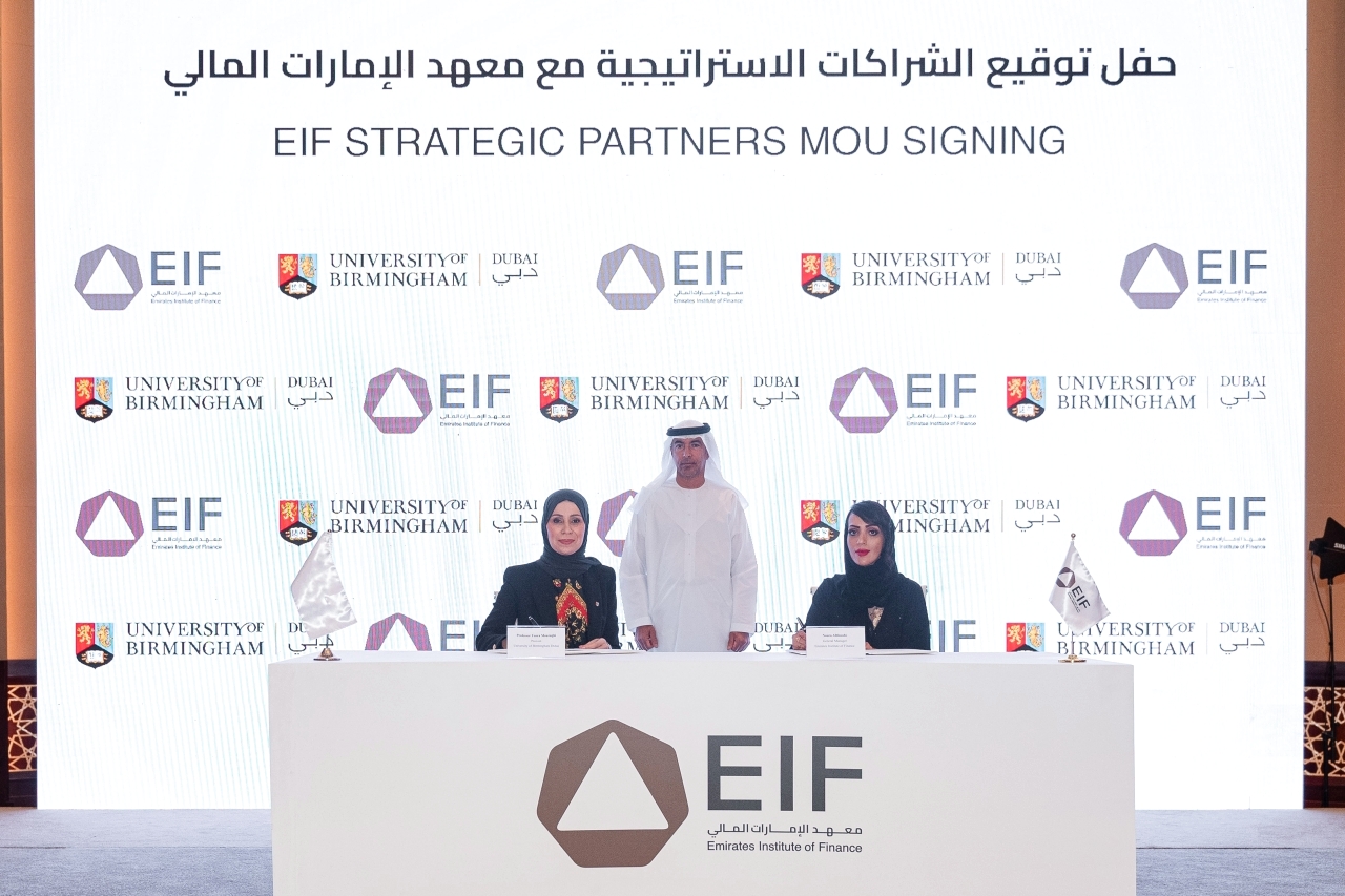شهدت معالي خالد بالعمى، محافظ مصرف الإمارات المركزي، حفل توقيع خمس مذكرات تفاهم استراتيجية بين معهد الإمارات المالي وعدة مؤسسات تعليمية وأكاديمية محلية وعالمية، بهدف تعزيز التعاون وتبادل المعرفة والخبرات في مجال الابتكار المالي في مختلف القطاعات. وتهدف هذه الاتفاقيات لدعم جهود المعهد وريادته في مجال التدريب في القطاع المالي والمصرفي.