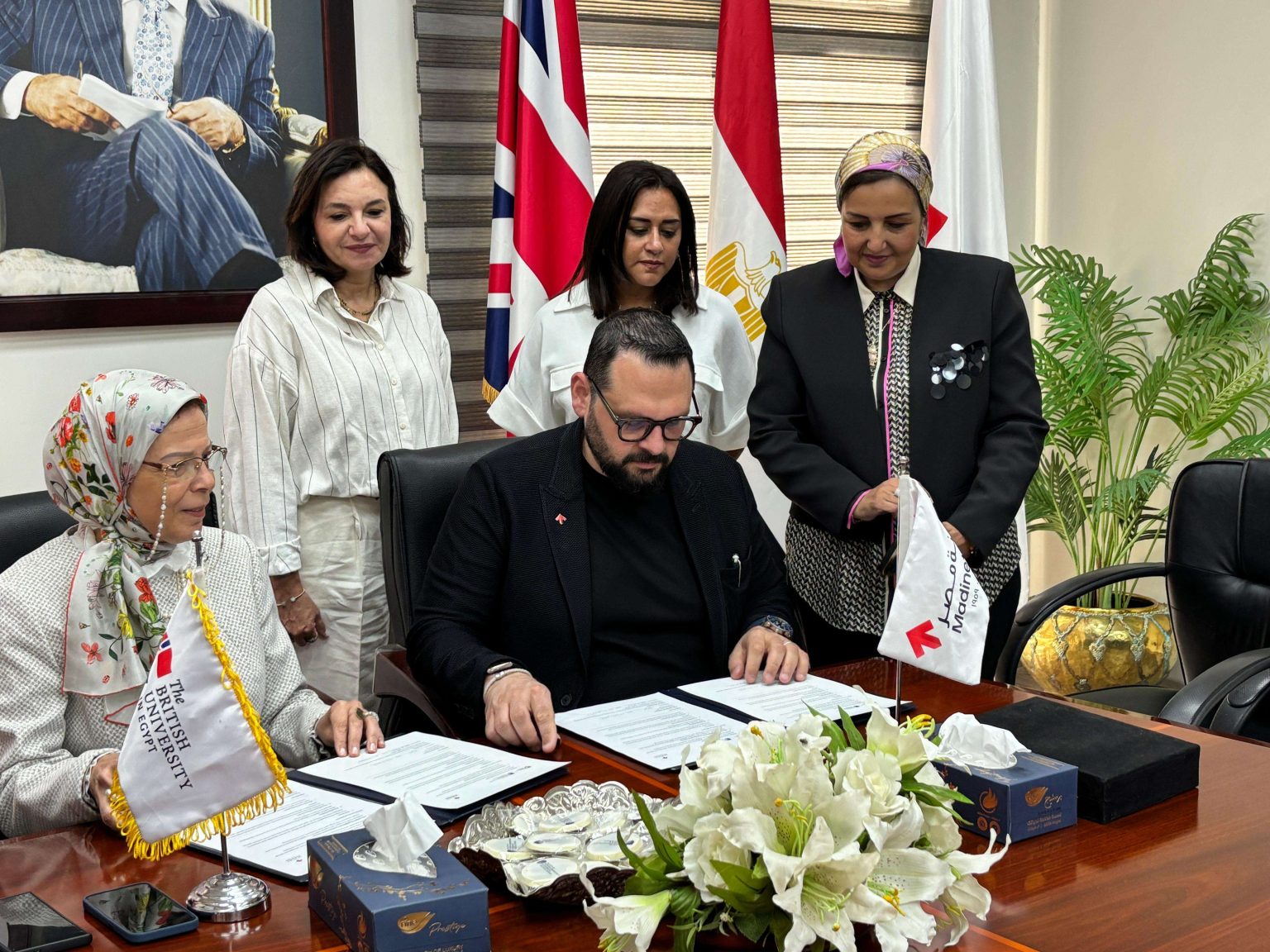كلية الاقتصاد و العلوم السياسية و إدارة الأعمال بالجامعة البريطانية في مصر توقع خطاب تعاون استراتيجي مع مدينة مصر