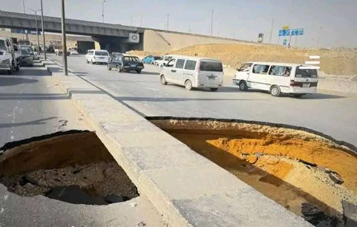هبوط أرضي مفاجئ يغلق طريق الأوتوستراد جزئيًا.. والداخلية تُعلن تحويلات مرورية (صور)