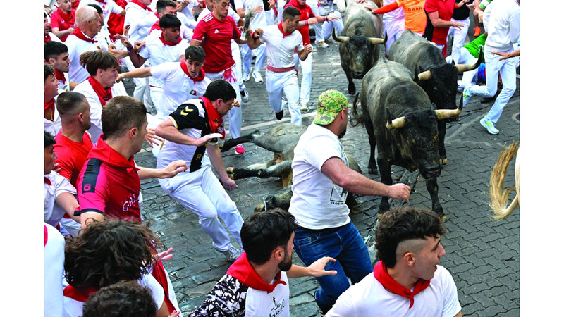 5 إصابات وعمليات سقوط خلال سباق للثيران في إسبانيا