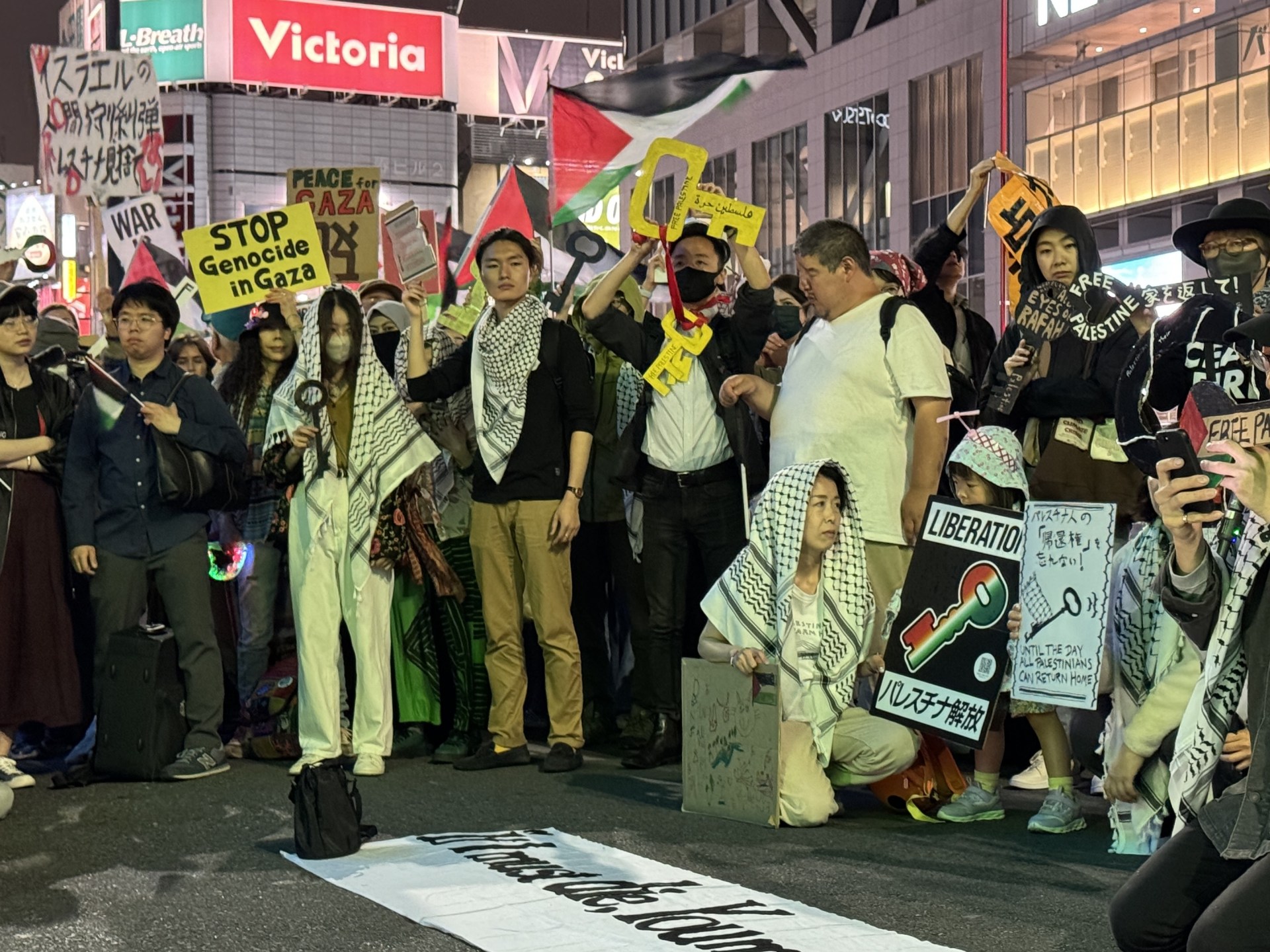 كما طالبوا إدارة الجامعة بإدانة العنف ضد المدنيين الفلسطينيين وإلغاء مذكرة تفاهم مع جامعة تل أبيب تخص الأبحاث العسكرية المشتركة، كما طالبوا بتقديم الدعم للطلبة الفلسطينيين. وقد أكد طالب الدكتوراه في جامعة كيوتو على وجود حملات قمع وتوظيف حراس أمن لمراقبة حركات الطلاب، لكنه اعتبر الوضع ليس بالعنف كما في بعض الدول الأخرى.