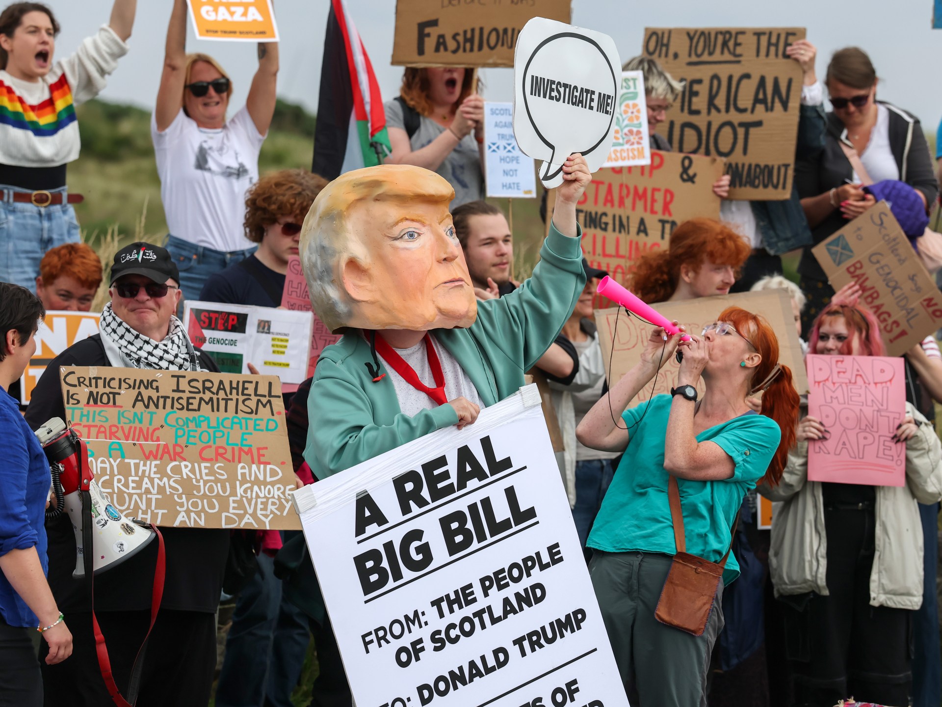 الأسكتلنديون يستقبلون ترامب بالاحتجاج اللاذع ونفخ القرب والتضامن مع فلسطين