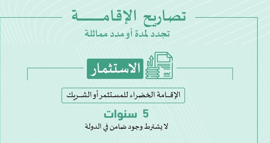 وفي تقرير صادر عن الحكومة، تم التأكيد على أنه يتطلب الحصول على تأشيرة الإقامة الخضراء الموافقة على الاستثمار بقيمة معينة وإثبات الشراكة، وقد أكدت أنه في حال كان المستثمر مشارك في أكثر من رخصة تجارية، فيجب أن يكون إجمالي رأس المال المستثمر يغطي النسبة المطلوبة. كما يجب الحصول على موافقة الجهات المحلية المعنية وترخيص لممارسة النشاط.