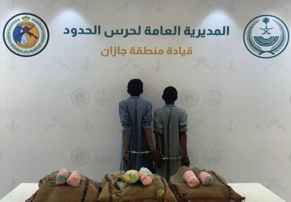 «حرس الحدود» بجازان يقبض على مخالِفَيْن لتهريبهما 60 كيلوغراماً من نبات القات