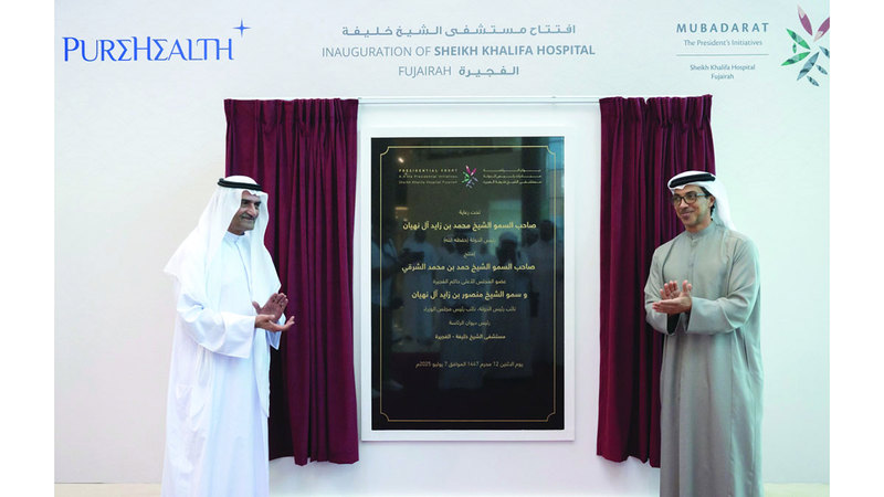 حمد الشرقي ومنصور بن زايد يفتتحان مستشفى الشيخ خليفة في الفجيرة