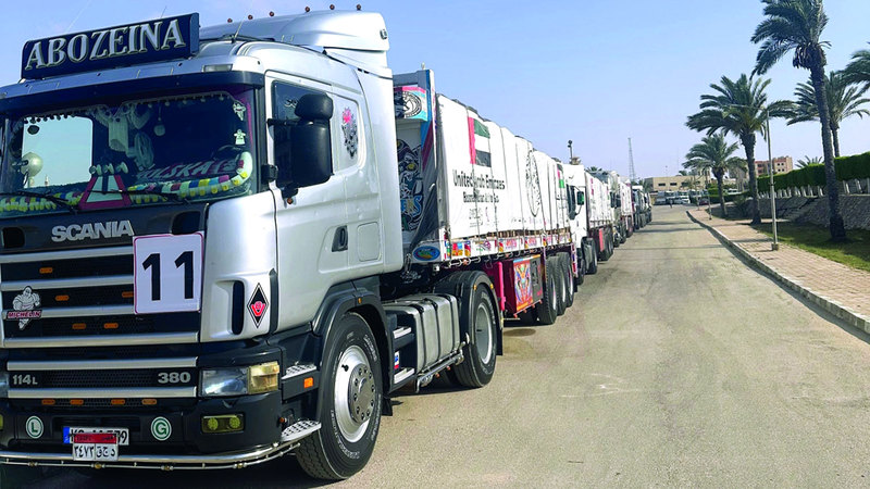 دخلت قافلة مساعدات إماراتية إلى قطاع غزة، أول من أمس، عبر معبر رفح المصري، وذلك في إطار جهود الدولة لدعم وإغاثة الأشقاء الفلسطينيين خلال الظروف الراهنة وضمن «عملية الفارس الشهم 3» الإنسانية. وتتألف القافلة من 12 شاحنة تحمل على متنها أكثر من 264 طناً من المساعدات الإنسانية تتضمن مواد غذائية ومياهاً وتموراً. وبذلك يصل عدد شاحنات المساعدات التي دخلت إلى القطاع، ضمن «عملية الفارس الشهم 3»، إلى 440 شاحنة أسهمت إلى حد كبير في التخفيف من شدة الأوضاع التي يعانيها سكان القطاع، وفي رفع المعاناة عن الفئات الأكثر ضعفاً، وتوفير الاحتياجات الأساسية لهم.