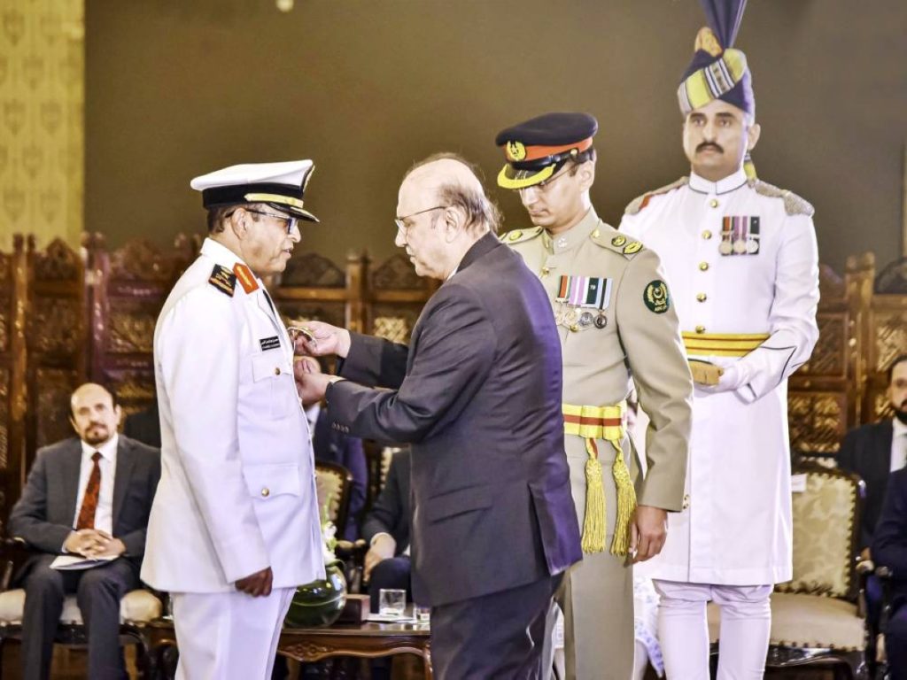 رئيس باكستان يمنح رئيس أركان القوات البحرية وسام «نيشان الامتياز» العسكري