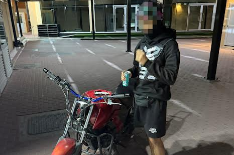 شاب يستعرض بدراجة نارية على ممشى الحديقة القرآنية في الخوانيج