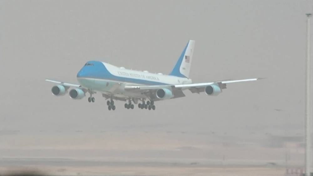 طائرة الرئيس الأمريكي دونالد ترمب تصل إلى الرياض