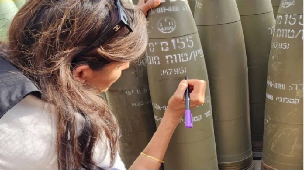 كشفت صورة انتشرت على مواقع التواصل الاجتماعي ووسائل إعلام إسرائيلية عن المرشحة الجمهورية السابقة للانتخابات الرئاسية الأمريكية نيكي هيلي وهي تكتب عبارة “اقضوا عليهم” على قذيفة إسرائيلية خلال زيارتها لمواقع عسكرية إسرائيلية بالقرب من الحدود الشمالية مع لبنان. ونشر السفير الإسرائيلي السابق لدى الأمم المتحدة داني دانون الصورة على حسابه في منصة “إكس”، مشيرًا إلى أن هيلي كتبت هذه العبارة أثناء جولتها معه.