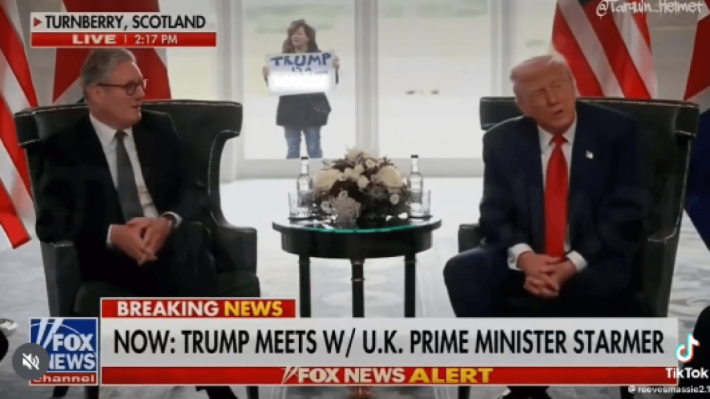 ما حقيقة ظهور محتجة “متوفاة” في فيديو لقاء ترامب وستارمر