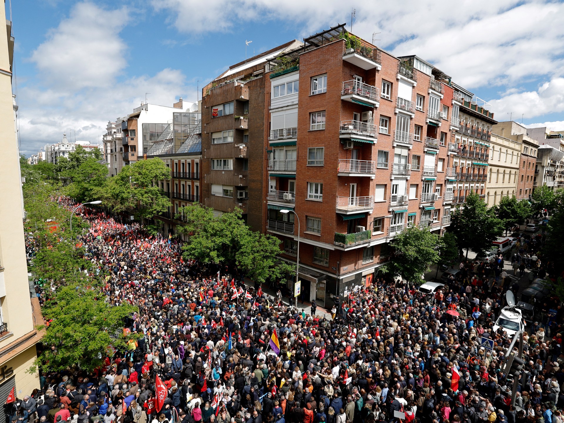تظاهر الآلاف من أنصار الحزب الاشتراكي الإسباني في محيط مقر الحزب بالعاصمة مدريد، تضامنا مع رئيس الحكومة بيدرو سانشيز. وردد المتظاهرون شعارات تطالب سانشيز بالاستمرار في مهامه على رأس الحكومة وتندد بمحاولات الانقلاب التي يقودها المحافظون واليمين عبر مؤسسات القضاء والإعلام. وكان سانشيز قد أعلن تعليق أنشطته السياسية بعد إكمال جولة أوروبية لإقناع بعض الدول الأوروبية بالاعتراف بالدولة الفلسطينية، وقال إنه يفكر في الاستقالة بعد فتح تحقيق بحق زوجته.