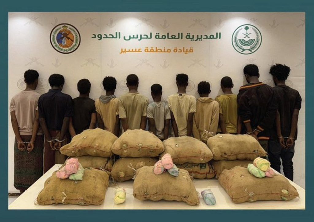 القبض على 11 مخالفًا لنظام أمن الحدود لتهريبهم 220 كيلوجرامًا من القات بعسير