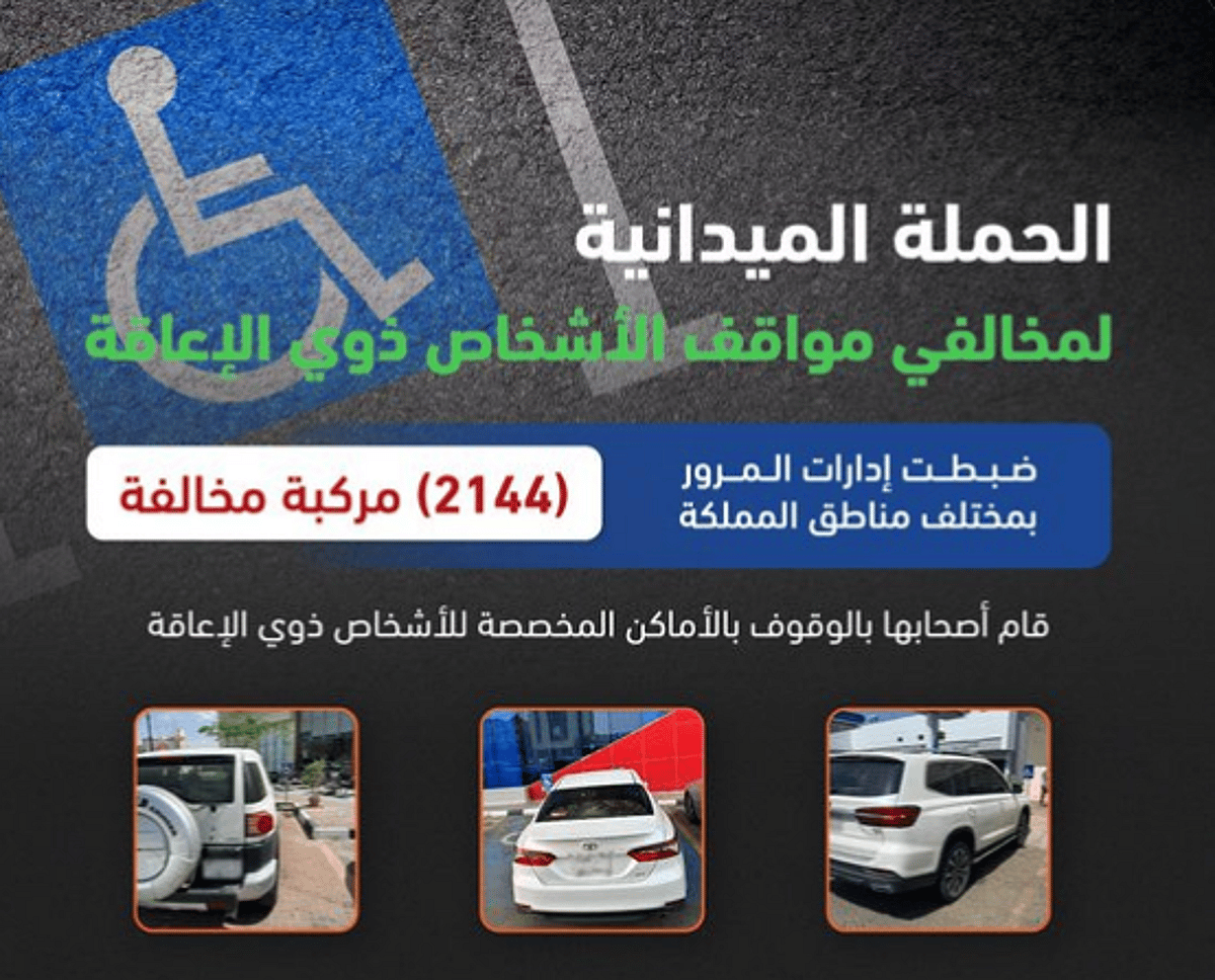 المرور: ضبط 2144 مركبة مخالفة متوقفة في أماكن «ذوي الإعاقة»
