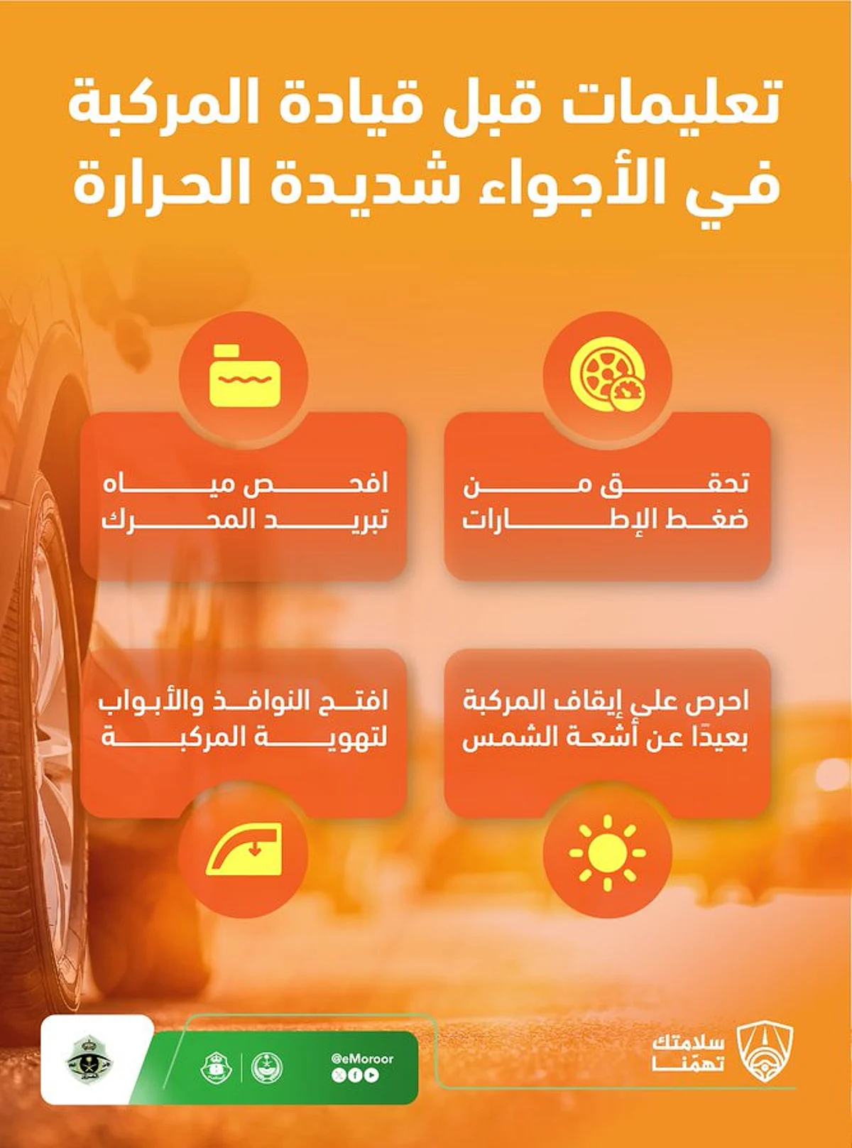 «المرور»: 4 تعليمات لقيادة المركبة بأجواء شديدة الحرارة