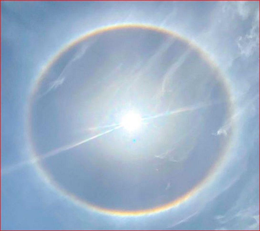 Summarize this content to 2000 words in 6 paragraphs in Arabic أعلنت الجمعية الفلكية بجدة أنه قد رصد صباح اليوم الخميس 24 أبريل 2025 ظهور حلقة ضوئية يبلغ نصف قطر الزاوي 22 درجة تحيط بقرص الشمس في قبة السماء بسماء محافظة صبيا جنوب السعوديةوأشارت الجمعية عبر حسابها على منصة «إكس» أن هذه الحلقة تنتج عن انكسار وانعكاس ضوء الشمس عبر بلورات الجليد الموجودة في السحب الرقيقة العالية على ارتفاع 5 إلى 10 كم من سطح الأرض.