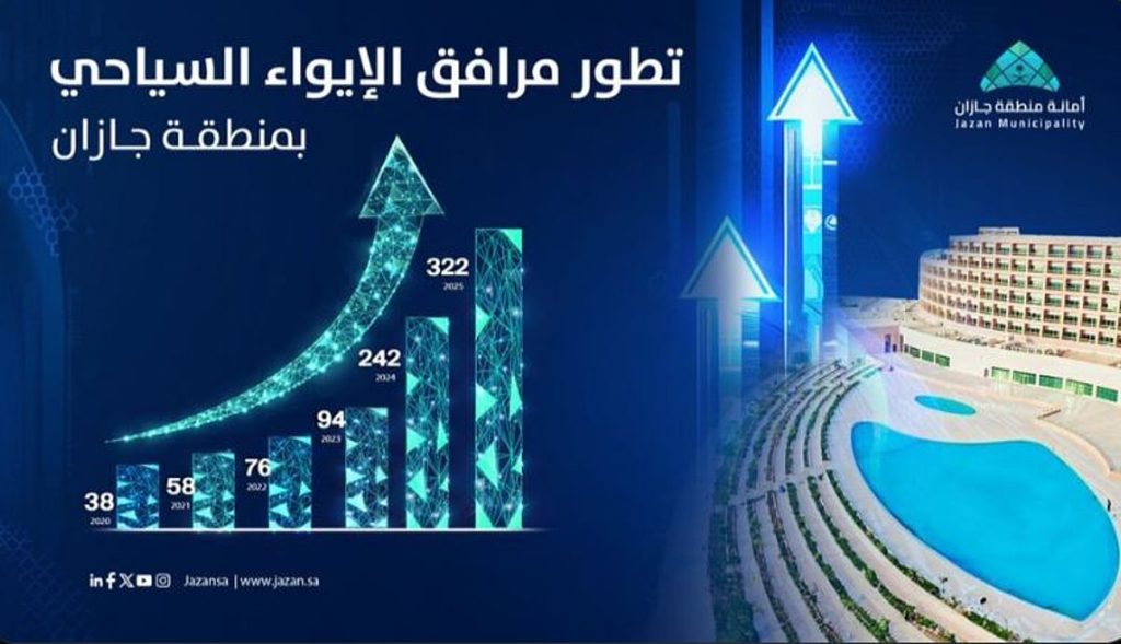 Summarize this content to 2000 words in 6 paragraphs in Arabic في خطوة تعكس التزام أمانة منطقة جازان بتعزيز البنية التحتية السياحية وتلبية احتياجات الزوار، شهدت المنطقة تحولًا كبيرًا في قطاع السياحة خلال السنوات الأربع الماضية، حيث ارتفعت عدد مرافق الإيواء السياحي من 38 مرفقًا إلى 322 مرفقًا.وتُعد هذه القفزة النوعية في العدد إنجازًا يعكس رؤية مستقبلية تسعى إلى تحويل جازان إلى وجهة سياحية رائدة، تجمع بين الجمال الطبيعي والتنوع الثقافي، وطورت المرافق الحديثة لتلبية معايير الجودة العالمية؛ مما يسهم في جذب السياح من مختلف أنحاء المملكة وخارجها.وتتنوع هذه المرافق بين الفنادق الفاخرة والشقق المفروشة، لتناسب جميع الأذواق والميزانيات، ورُكز على توفير خدمات متكاملة تشمل المطاعم والمرافق الترفيهية؛ مما يعزز تجربة الزوار ويجعل إقامتهم أكثر راحة وامتيازًا.وتسعى أمانة منطقة جازان إلى تعزيز الفعاليات السياحية والمهرجانات التي تعكس الثقافة المحلية؛ مما يسهم في زيادة الإقبال على المنطقة ويعزز من مكانتها السياحية.وبفضل هذه المشاريع التطويرية، أصبح بإمكان الزوار الاستمتاع بتجربة سياحية فريدة تجمع بين الراحة والترفيه؛ مما يعكس الجهود الحثيثة التي تبذلها أمانة المنطقة في سبيل تحسين تجربة الضيوف وتعزيز التنمية الاقتصادية.