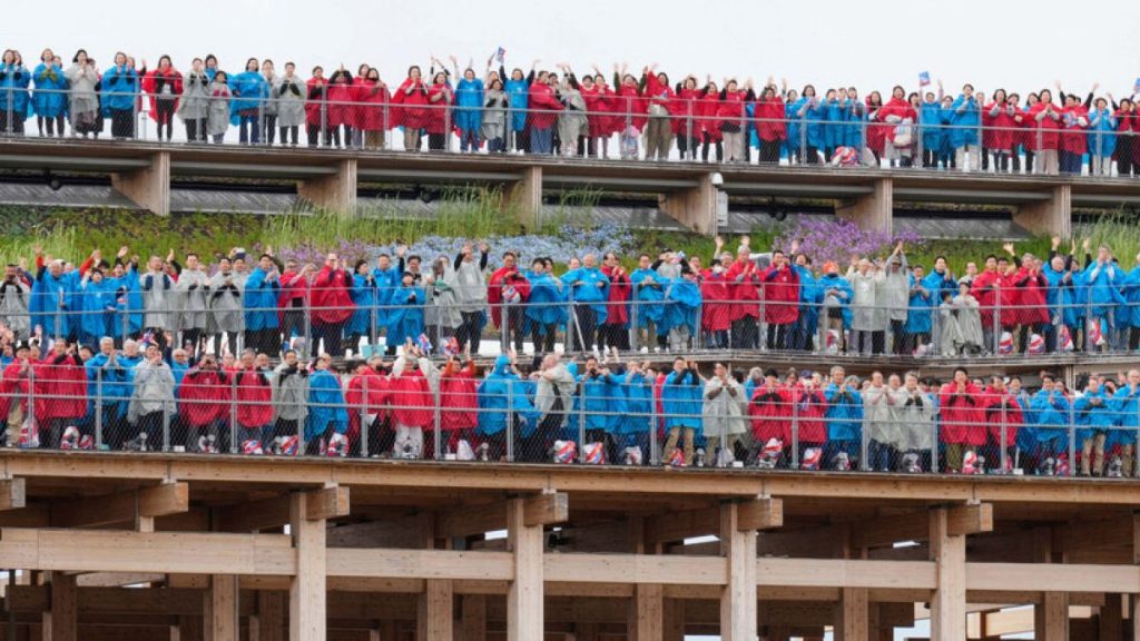 Summarize this content to 2000 words in 6 paragraphs in Arabic ADVERTISEMENTThe Expo 2025 opened in Osaka on Sunday with more than 10,000 people singing Beethoven’s Ninth Symphony to celebrate the start of the six-month event that Japan hopes will unite the world divided by tensions and wars.The Osaka Expo will be held at Yumeshima – which means ‘dream island – which is a reclaimed industrial waste burial site in the Osaka Bay. Participants from more than 160 countries, regions and organisations showcase their futuristic exhibits inside about 80 pavilions of unique architecture.The main theme of the second Osaka Expo is to “create a future society for our lives”. The city held the Expo once before in the year 1970, which set record numbers for the event, attracting 64 million visitors. The record was only beat decades later in 2010 in Shanghai.Organisers expect about 28 million visitors to trickle through by mid-October. Though ticket sales have been slow, with the event having only sold about nine million tickets in advance, short of the initial target of 14 million.“It’s been 55 years since the last Expo in Osaka. I’ve been looking forward to it,” said Daiki Chiba, who travelled from Sendai, about 900 kilometres northeast of Osaka.Many visitors carried Myaku-Myaku mascots – the official symbol and logo of the event – or wore clothes matching its colours — red, blue and white — to get in the mood.The mascot is an imaginary creature featuring a blue face encircled by red balls, some of them eyeballs. Organisers say it was born from the fusion of cells and water in a small spring in the Kansai region.The Expo comes only four years after Japan struggled to host the no-audience Tokyo Olympics during the coronavirus pandemic.It opens in the wake of trade wars and fears of a global economic downturn sparked by US President Donald Trump’s tariffs, the three-year Russian invasion of Ukraine and Middle East conflicts.Prime Minister Shigeru Ishiba compared the global tensions to a “national crisis” and said that Trump’s tariffs, especially the 25% duty on automobiles, would be a blow to all industries and Japan’s economy.But, Japan is still committed despite all the global uncertainty to turn the pinch into an opportunity.“I think the timing is actually quite fitting,” said Sachiko Yoshimura, head of Expo 2025 global communications.“Holding the Expo now could eventually help to address the divisions in the world. … I believe this Expo in Japan might actually lead to stronger international relationships and improvements,” he added.Exhibits of cutting-edge technology, such as robots and flying cars, as well as pop culture like Hello Kitty and Gundam, are among the highlights of the Expo.The US pavilion focuses on space travel. Its lunar stone from the Apollo 12 mission, a sensation at the 1970 expo, was back on display.ADVERTISEMENTChina, also highlighting space technology, exhibits soil samples from its lunar missions.Carrying a “Not for sale” sign and decorated with its blue-and-yellow national flags, Ukraine attracted many visitors with a globe and other items carrying barcodes. By scanning them, visitors can see videos showing people’s lives at war and their reconstruction effort.Dmytro Liuyi, Ukrainian creative director, said his country’s participation was undecided until December due to the ongoing full-scale Russian invasion of Ukraine.Kyiv’s pavilion aims to highlight the hardships of war and promote global peace and stability over conflict and misery.ADVERTISEMENT