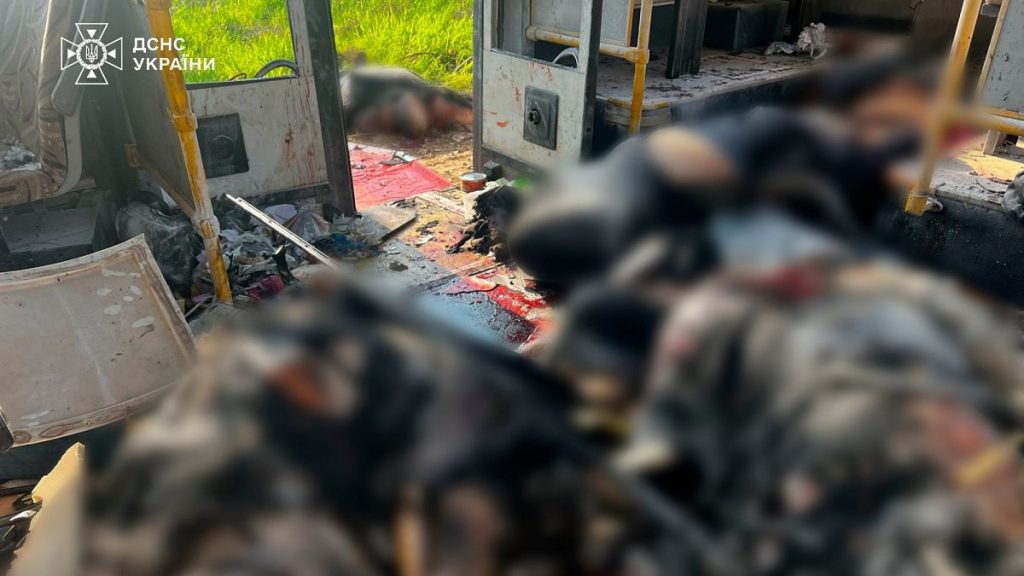 Summarize this content to 2000 words in 6 paragraphs in Arabic ADVERTISEMENTThe Russian army launched another massive attack on Ukrainian cities overnight on Tuesday, with strikes carried out in Kyiv, Kharkiv, Poltava, Odesa and Dnipropetrovsk regions.A Russian kamikaze drone attack in Marhanets in Ukraine’s Dnipropetrovsk region has killed nine people and injured at least 30, according to preliminary data, the head of the regional military administration said.”The enemy attack claimed nine lives. Condolences to relatives and friends. The number of injured is constantly growing. According to information at the moment, there are 30. The aggressor hit a kamikaze drone on the bus with employees of the enterprise”, said Dnipropetrovsk governor Serhiy Lysak.The Ukrainian State Emergency Service specified that the bus was hit by a Russian FPV drone. The service published photos from the scene of the impact, showing the punctured roof of the bus, the dead and wounded inside the vehicle.Other Ukrainian regions targetedIn Poltava, six more people were injured in another overnight Russian attack. Three of them are hospitalised, and one person was seriously injured, local authorities said.”There is damage and destruction as a result of falling debris and direct hits,” acting regional head Volodymyr Kogut wrote in his Telegram channel.Russian troops also destroyed one of the key enterprises of the energy infrastructure in Kherson, according to the region’s governor, Oleksandr Prokudin.Prokudin said emergency workers are doing “everything possible and impossible” to stabilise the energy situation in the city.”I ask everyone to use electricity as economically as possible. In the near future, forced shutdowns are possible,” he emphasised.Officials also said civilian infrastructure was targeted in Odesa and Kharkiv. In Odesa, at least two people were injured when Russian drones hit residential buildings, starting fires.According to the Ukrainian General Staff, Russia launched 125 airstrikes across Ukraine, dropping 242 guided bombs, firing more than 6,000 shells and engaging some 2,800 kamikaze drones.Russia has intensified its attacks across Ukraine in recent weeks, even as Ukrainian President Volodymyr Zelenskyy proposed a 30-day truce on strikes against civilian infrastructure.Putin said Russia would observe a 30-hour unilateral ceasefire on Saturday, but Ukrainian and UK officials said Moscow’s attacks continued during the alleged pause.