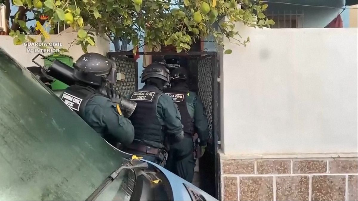 rewrite this title in Arabic Spanish authorities say they dismantled a human trafficking organisation smuggling migrants into EU