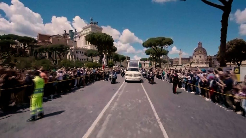 rewrite this title in Arabic Video. Hundreds of thousands bid farewell to Pope Francis’ coffin in Rome