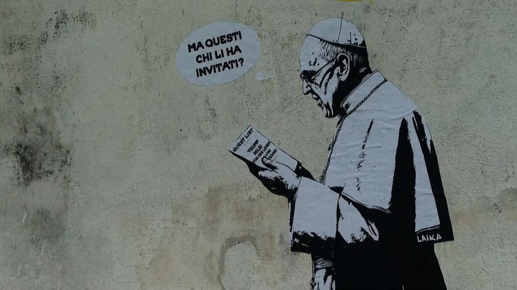 The piece, painted in the early hours of Thursday, portrays Pope Francis in heaven, gazing at a guest list for his funeral and asking: “But who invited them?” The list includes names such as US President Donald Trump and Argentine President Javier Milei, leaders known for their tense relations with the late pontiff. Also mentioned are European Commission President Ursula von der Leyen, Italian Transport Minister Matteo Salvini, and Interior Minister Matteo Piantedosi.