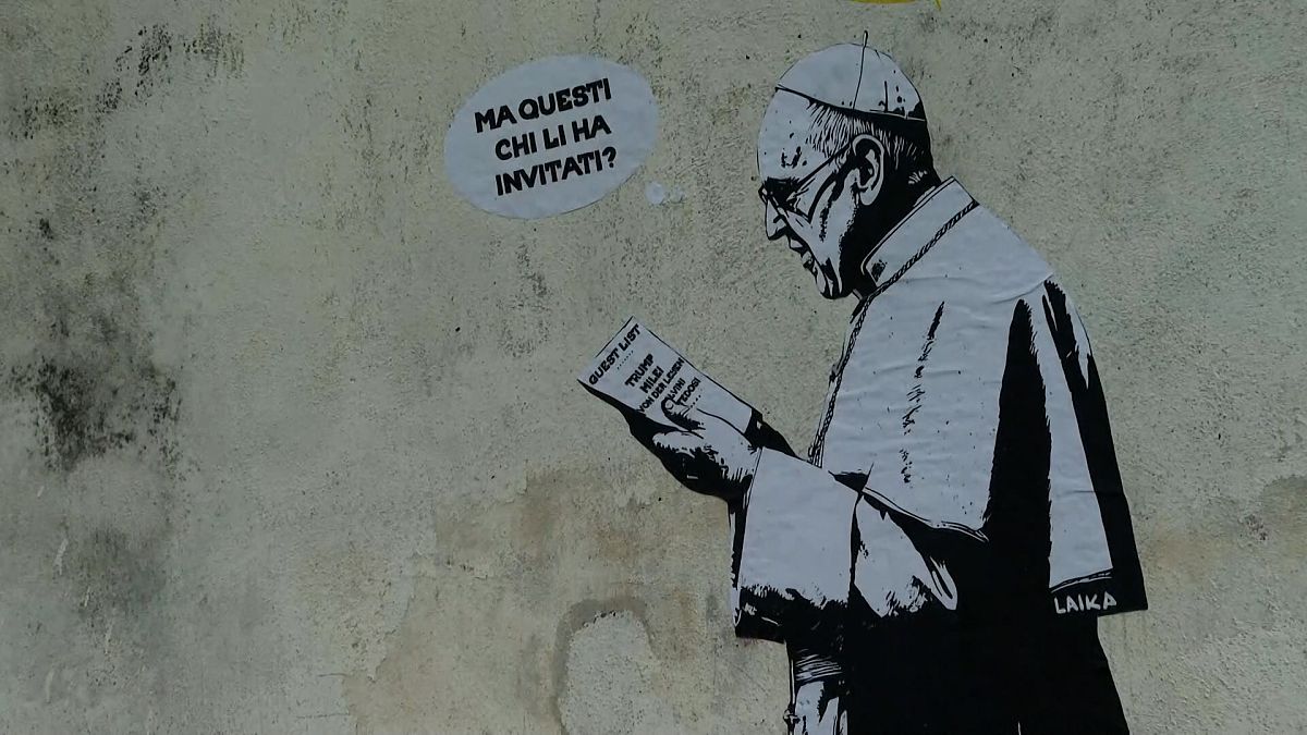 Updated: 25/04/2025 – 12:25 GMT+2A new mural by street artist Laika has appeared near the Vatican, drawing attention for its satirical take on world leaders expected to attend the upcoming funeral of Pope Francis.