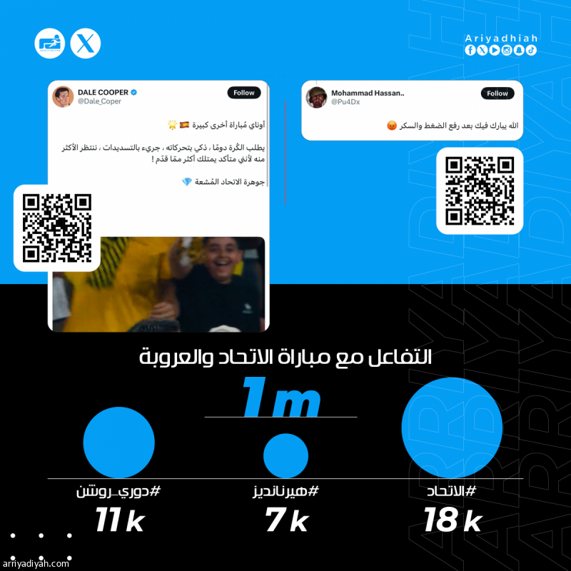احتفل مشجعو نادي الاتحاد، الخميس، بانتصار الفريق الأول لكرة القدم على ضيفه العروبة في الجولة 27 من دوري روش السعودي، وإحكام قبضته على صدارة المسابقة بفارق 8 نقاط عن أقرب منافسيه.وبلغ التفاعل مع انتصار «النمور» أكثر مليون في منصة «إكس» للتدوينات القصيرة بعد أول نصف ساعة من نهاية المواجهة.من الجانب المحتفل قال مشعل: «الله يديمها من فرحة»، وكتب يقين: «المهم استمرار الانتصارات وفالنا الدوري»، وقال أحمد: «كبير آسيا في الصدارة بفارق 8 نقاط «مؤقتًا» عن أقرب منافسيه»، فيما كتب أبو أنس: «الحمد لله موعدنا الأحساء إن شاء الله فوز بإذن الله»، الرد جاء من محمد الذي قال: «بإذن الله يتعثر المنافسون. اقترب حسم اللقب».غالبية الجماهير الاتحادية أثنت على مستوى الإسباني أوناي هيرنانديز، لاعب الوسط الذي سجل هدف التقدم مثل تاك الذي قال: «الجوهرة أوناي هيرنانديز»، وكتب عمرو: «كيف تقدم نفسك بشكل مثالي لـجمهور الاتحاد؟ إليك الطريقة من برشلونة، من مصنع النجوم، من لاماسيا إلى العميد أوناي هيرنانديز يسجل أول هدف له رسميًا بقميص نادي الاتحاد بهذا الشكل الخيالي.. مذهل مذهل مذهل»، فيما قال حساب ديل: «أوناي مُباراة أخرى كبيرة. يطلب الكُرة دومًا، ذكي بتحركاته، جريء بالتسديدات، ننتظر الأكثر منه لأنني متأكد يمتلك أكثر ممّا قدّم ! جوهرة الاتحاد المُشعة».طرف آخر اتحادي وصف مستوى الفريق بغير الجيد مثل أبو نورة الذي قال: «الحمد لله على الفوز، مستوى ما يطمن بضياع الفرص والعشوائية»، ومثله كتب مازن: «والله مستوى ماش لازم كل مباراة كذا على أعصابنا لين تنتهي المباراة مستحيل يخلصونها بدري لا، لازم رفعة ضغط، أهم شيء 3 نقاط»، فيما قال محمد: «الله يبارك فيك بعد رفع الضغط والسكر».