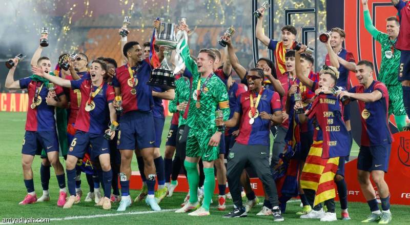 توّج فريق برشلونة الإسباني الأول لكرة القدم بكأس الملك للمرة الـ 32 بعد تغلُّبه، السبت، على ريال مدريد 3ـ2 في مباراةٍ شهدت شوطين إضافيين على ملعب «لا كارتوخا» في إشبيلية، ليعادل مرات الفوز معه بالنهائيات الثماني التي جمعتهما منذ 1936.وفرض برشلونة ضغطًا مبكرًا، وتحكَّم بالكرة وسط تراجعٍ دفاعي من لاعبي الريال حتى جاءت الدقيقة 28 عندما مرَّر الجناح لامين يامال كرةً إلى بيدري، لاعب الوسط، الخالي من الرقابة، الذي أرسلها مباشرةً إلى المرمى.وأضاع لاعبو برشلونة عديدًا من الفرص السانحة للتسجيل، فيما اكتفى الريال ببعض الهجمات المرتدة حتى أطلق حكم المباراة صافرة نهاية الشوط الأول.وفي الشوط الثاني، نشط الريال، وبات أكثر خطورةً على مرمى برشلونة خاصَّةً من قِبل الجناح البرازيلي فينيسيوس جونيور، والبديل المهاجم الفرنسي كيليان مبابي، الذي تسبَّب في ركلةٍ حرةٍ خارج منطقة الجزاء، تكلف بتسديدها مسجلًا منها هدف التعادل «70».وتواصل الضغط المدريدي، ليسجل الفرنسي أوريلين تشاوميني الهدف الثاني بكرةٍ رأسيةٍ مستفيدًا من ركنيةٍ، أرسلها التركي أردا جولر.بعدها استفاق برشلونة، وشنَّ بعض الهجمات، أسفرت إحداها عن هدف التعادل بواسطة مهاجمه فيران توريس الذي تسلَّم كرة يامال، وتجاوز بها المدافع الألماني أنتوني روديجر، وأرسل الكرة إلى المرمى الخالي بعد خروج الحارس البلجيكي تيبو كورتوا لملاقاته «83»، لينتهي عليه الشوط الثاني، ويحتكم الغريمان إلى شوطين إضافيين، نجح في الثاني منهما الفريق الكاتالوني في حسم الأمور بتسديدة المدافع الفرنسي جول كوندي بعد قطعه تمريرة القائد لوكا مودريتش لزميله فران جارسيا القريبة من منطقة الجزاء «116».وهذا الفوزُ الثالث تواليًا لبرشلونة على غريمه الموسم الجاري بعد 5ـ3 في نهائي السوبر، و4ـ0 في الدور الأول للدوري المحلي، الذي يتصدره بفارق أربع نقاطٍ عن الريال قبل خمس جولاتٍ من نهاية البطولة.