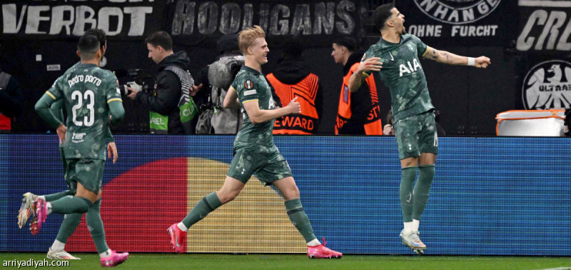 بلغ فريق توتنام الإنجليزي الأول لكرة القدم نصف نهائي الدوري الأوروبي «يوروبا ليج» بتغلبه على مضيفه آينتراخت فرانكفورت الألماني 1-0 في إياب ربع النهائي، متفوقًا في مجموع المباراتين 2-1.وتشكل المسابقة الأوروبية الثانية ملاذًا أخيرًا للفريق اللندني لإنقاذ موسمه الكارثي، حيث يحتل المركز الخامس عشر في الدوري الإنجليزي الممتاز. من جهته، فشل فرانكفورت الذي يتجه لتحقيق أفضل نتيجة له محليًا منذ ثلاثة عقود باحتلاله راهنًا المركز الثالث، في بلوغ نصف النهائي للمرة الثالثة من آخر سبعة مواسم، حيث ودع بطل نسخة 2022 من دور الثمانية من دون أن يستفيد من عاملي الأرض والجمهور.وجاء الشوط الأول مثيرًا حيث استهل أصحاب الأرض اللقاء بأفضلية نسبية، لكن سرعان ما نجح توتنام في امتصاص الفورة الألمانية، فكاد الفرنسي ماتياس تيل يمنحه التقدم من تسديدة من داخل المنطقة تصدى لها الحارس كايو سانتوس إلى ركلة ركنية «25».ووقع فرانكفورت في المحظور عندما تسبب تدخل حارسه سانتوس على جيمس ماديسون المنفرد به باحتساب ركلة جزاء بعد العودة إلى تقنية الحكم المساعد فانبرى لها دومينيك سولانكي في الدقيقة 43.وضغط فرانكفورت منذ بداية الشوط الثاني بحثًا عن إدراك التعادل، وهدد مرمى توتنام من ركلة حرة عبر البديل الجزائري فارس الشايبي مرت بجانب المرمى «51».وأوشك توتنام على انتزاع هدفه الثاني لكن كرة الأرجنتيني كريستيان روميرو الرأسية مرت قريبة من المرمى «61».وتعملق الحارس الإيطالي لتوتنام غولييلمو فيكاريو بالتصدي لمحاولة الشايبي إثر كرة عرضية من الدنماركي راسموس كريستانسن «75»، قبل أن يهدر الأخير فرصة هدف محقق بعد السيطرة على الكرة أمام المرمى «82».
