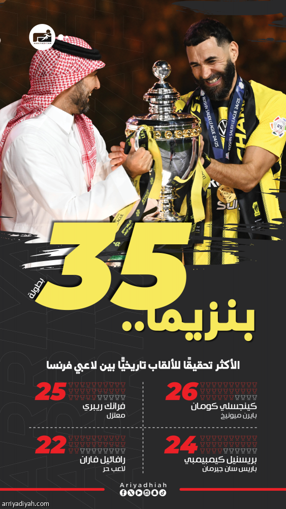 بنزيما الأكثر تتويجا بالألقاب بين الفرنسيين