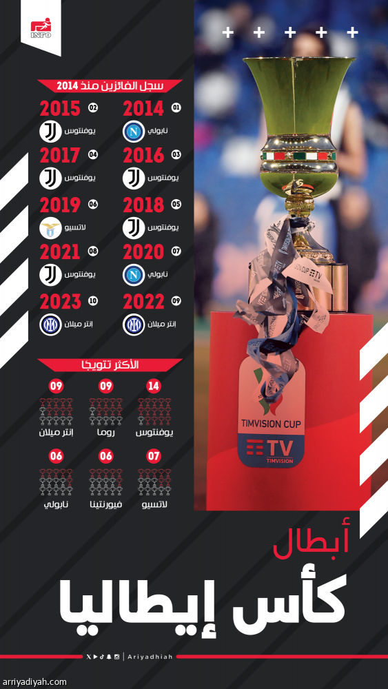 يأمل فريق أتلانتا الإيطالي في كرة القدم في كسر عقدة نهائيات الكأس المحلية وحصد اللقب الثاني في تاريخه عندما يواجه يوفنتوس. وسيقام اللقاء في الملعب الأولمبي في روما، ويحمل طابعًا ثأريًا بعد الهزيمة في نهائي 2021. تحمل هذه النسخة الرقم 76 من البطولة، حيث فاز باللقب 16 فريقًا بما في ذلك يوفنتوس الذي حقق 14 تتويجًا.