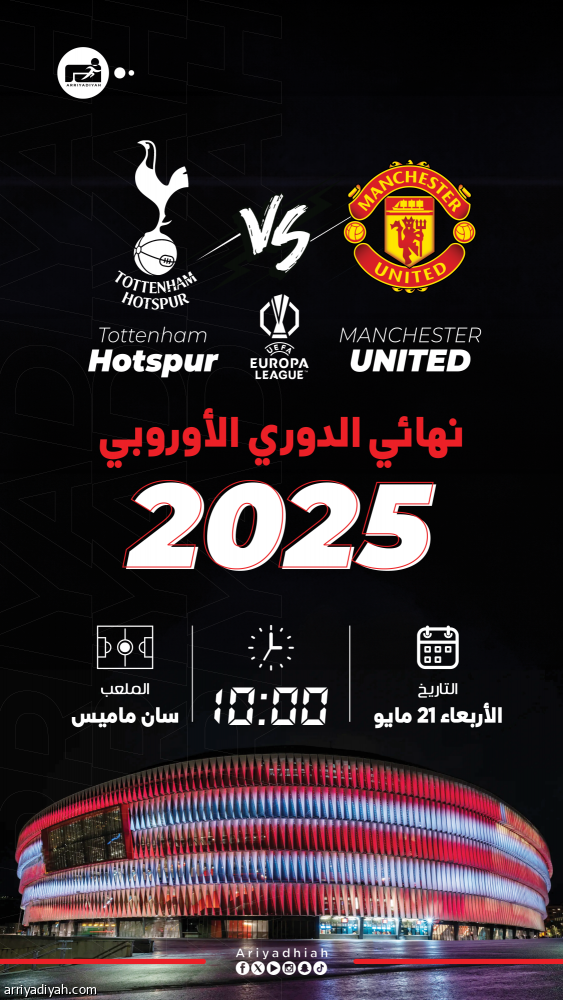 ويستضيف ملعب «سان ماميس» في مدينة بلباو الإسبانية المباراة النهائية للمسابقة التي تجمع الفريقين الإنجليزيين، الأربعاء 21 مايو الجاري.
