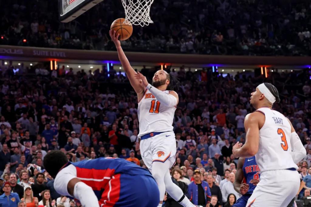 Brunson scored 12 of his game-high 34 points in the final 8:27, leading the Knicks to a come-from-behind Game 1 victory over the Pistons on Saturday night.