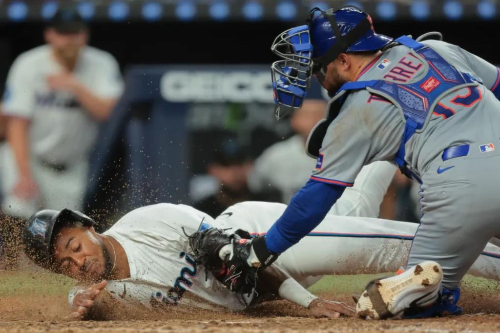 Luis Torrens, who has been thrust into the everyday job because of Francisco Alvarez’s hand surgery, has been a surprising two-way force who slugged a home run Tuesday and made the play of the Mets’ six-game season in Wednesday’s 6-5, 11-inning win over the Marlins at loanDepot Park.