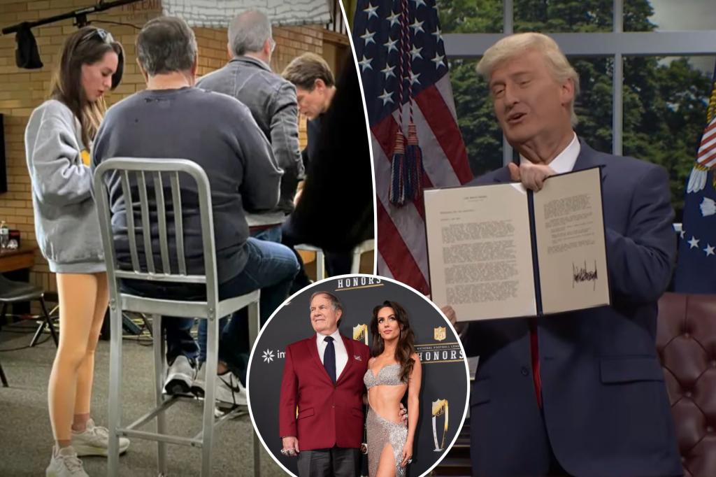 The skit featured James Austin Johnson’s Donald Trump assisted by Mikey Day’s Stephen Miller in an executive order-signing skit that deflated Belichick’s ego.